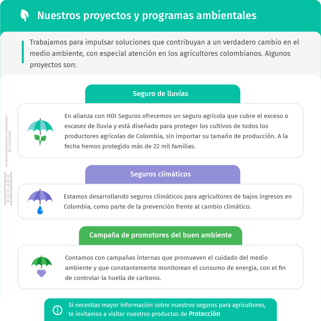 La preservación del medio ambiente es uno de los principales retos para el desarrollo sostenible y la calidad de vida de la humanidad; por lo cual, nos hemos sensibilizado a esta realidad y en alianza con Ariel – Escuela para el Alma, apoyamos la conservación de ecosistemas y contribuimos con la siembra de árboles. Algunos de los árboles que hemos sembrado son: