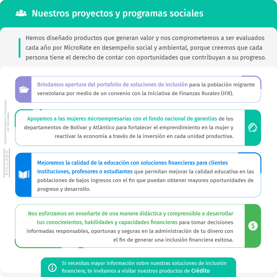 Creamos oportunidades que permitan crecer y mejorar la calidad de vida de las personas. En este espacio encontrarás nuestra contribución al campo colombiano y te enseñaremos cómo puedes generar un cambio. ¡Te invitamos a conocerlo!