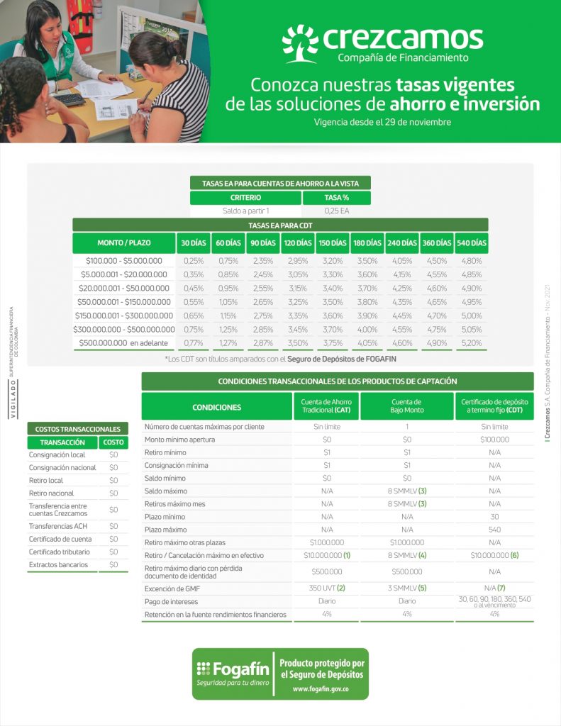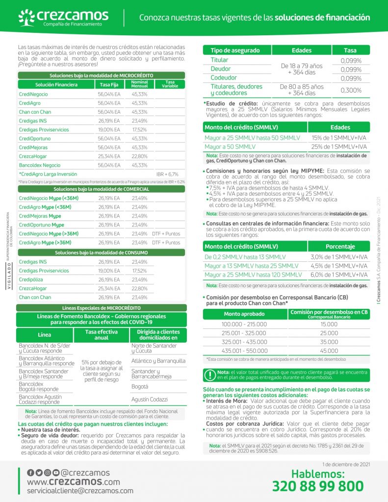 Tasas de crédito Conoce las tasas vigentes de nuestro portafolio de soluciones financieras Descarga aquí las tasas vigentes Tasas de ahorro e inversión Conoce las tasas vigentes de nuestro portafolio de soluciones de ahorro e inversión Descarga aquí las tasas vigentes Linkedin Facebook Youtube Instagram Whatsapp Crédito para remodelación de vivienda Plata "Chan con Chan" Instalación de servicios públicos Crédito para negocio Pagos en línea